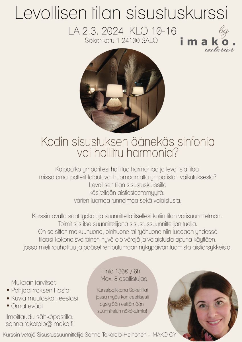 Kurssin vetäjä Sisustussuunnittelija Sanna Takatalo-Heinonen - IMAKO OY